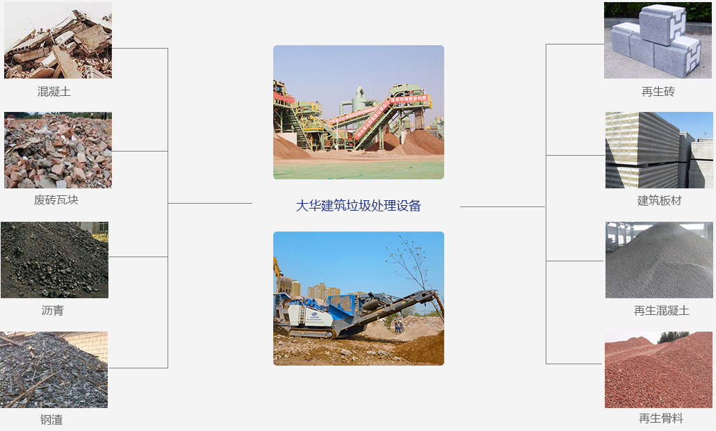 洛陽大華重型機械有限公司的小模塊建筑垃圾生產線,是經過破碎、分選、篩分流程后,最后將其消化為不同粒徑的砂石再生骨料,這種生產線每小時可吃掉建筑垃圾80多噸,消化后的建筑垃圾可用于各類混凝土砌塊、地面磚,從而實現循環利用。