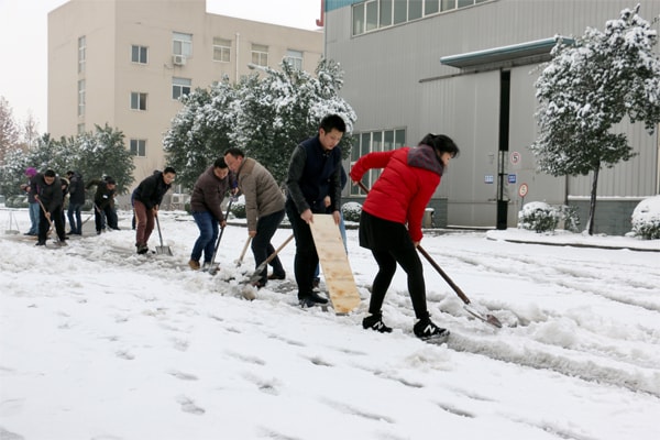 同事們不畏嚴寒,積極主動、相互配合、齊心協力,冒著凜冽的寒風,清掃著冰雪的路面,許多人的手和臉都被凍得通紅,鞋子也被浸透,然而,這一切絲毫沒有影響大家的勞動熱情,他們團結協作,掃的掃、鏟的鏟井然有序的干的熱火朝天,經過一個多小時的奮戰,公司辦公樓、車子棚及各車間通道都被打通,確保員工出行和樹木安全。