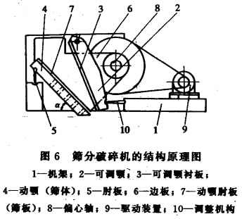 傳統的破碎篩分工藝須分別在破碎機械和篩分機械中完成;我們提出將破碎、篩分這兩個物理過程有效結合,由振動篩分給料機十篩分破碎機組成篩破機組,構成篩破結合的破碎工藝流程的新思路。凡是符合排料粒度木需要破碎的物料,盡可能不進破碎機;進入破碎機的物料在破碎過程中,一旦破到排料粒度的要求,要盡可能及時將這些物料從破碎腔中排出。