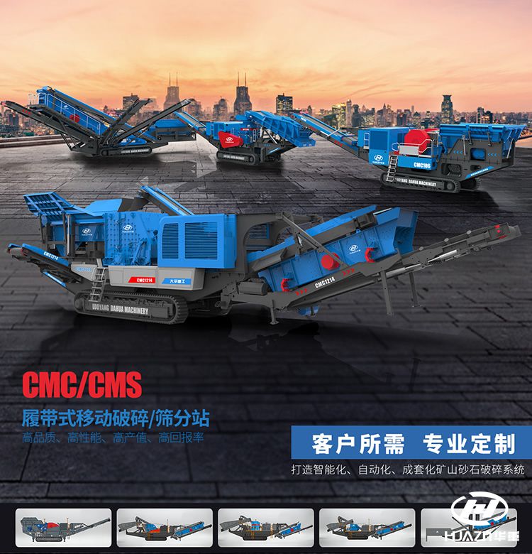 移動式破碎機主要由喂料系統、破碎系統、篩分系統、輸送系統、控制系統等部分組成。其工作原理是將放入的石頭通過喂料系統送入破碎腔,在破碎腔內,石頭被高速旋轉的轉子上的板錘擊打、碰撞破碎。經過初步破碎的石頭,再由篩分系統進行篩分,將符合要求的破碎產物輸送出去,不符合要求的部分則返回破碎腔繼續破碎。