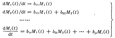 方程織(1—43)的解如用行列式表示時,則粒應分布等可用矢量表示,而顆粒各粒度組成間的移動速度可用矩陣表示。