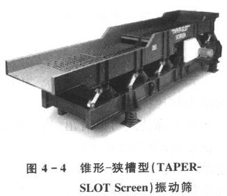 弧形篩(圖4—2)篩面呈弧形,待篩分物料制成料漿。料漿含水約為30%。 從弧形篩頂部結入。在篩面上,由于料漿受重力、離心力及篩條對料漿的阻力作 用,使料漿緊貼篩面流動。緊貼篩面的下層料漿運動速度低,細粒和液體從篩縫 中落入篩下,大顆粒從篩面末端排出。一般通過篩縫的顆粒尺寸為篩縫寬度的 1/4,所以這種篩不易發生堵塞,但篩分效率低。