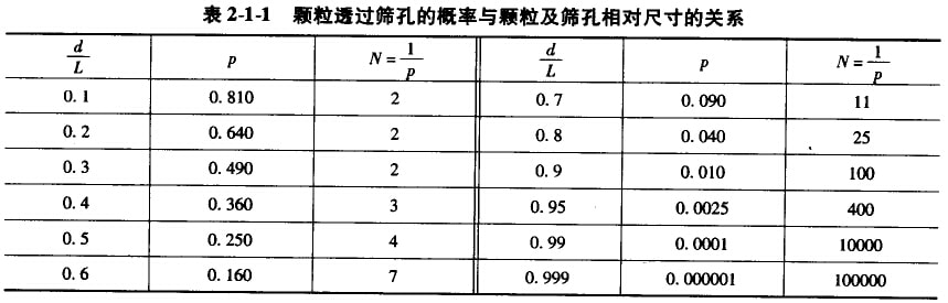 顆粒被篩絲所阻礙,使它不透過篩孔的概率之值等于(1—P)。