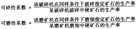 愈硬的礦石愈難破碎及磨碎,為了能將礦石力學(xué)強度對破碎及磨碎的影響進(jìn)行量化確定,在工程計算上,提出用可碎性系數(shù)及可磨性系數(shù)來表征這種影響。
