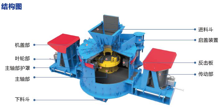 4、為了保證設備的整體性能,PLK系列立軸沖擊破碎機對關鍵部件例如葉輪、軸承筒、主機體等進行結構優化設計,確保該破碎設備在破碎作業時高產、高效、低成本。