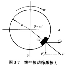 這個離心力F稱為激振力,它的方向隨偏心重塊所在位置而改變,指向永遠背離轉動中心。 在任意瞬時t,F與x軸的夾角為ψ,且ψ=ωt,則F力在x和y軸方向的分力為