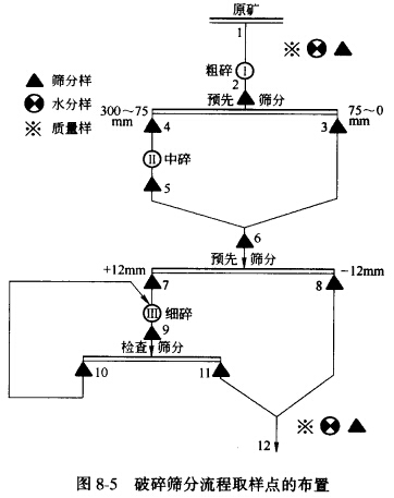 (4)分析各段碎礦產品的粒度組成,結合各段碎礦礬排礦口測定結果,分析縮小最終產品粒 度的可能性和方法。