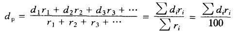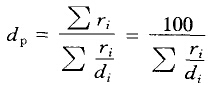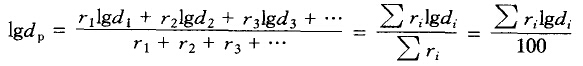 (2)寬級別混合物料的平均粒度。對于這種混合物料,可首先進行篩析,求出粒皮組成后采用統計學求平均值的方法計算其平均直徑。如已知混合物料中各窄粒級的平均直徑分別為d1、d2、d3、…,其產率分別為r1、r2、r3、…,則該物料的平均粒度可以下列三種方法計算