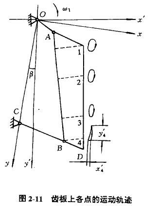 復(fù)擺領(lǐng)式破碎機(jī)運(yùn)動分析機(jī)構(gòu)模型如圖2-8所示入點(diǎn)是齒板上的任意點(diǎn),在直角坐標(biāo)系xOy中,s點(diǎn)的位移方程為