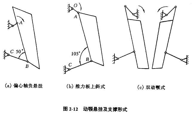 ①將傳統(tǒng)復(fù)擺顎式破碎機(jī)偏心油裝置正懸掛改為負(fù)懸掛,如圖2-12a所示,破碎機(jī)特性值m得到改善,齒板壽命可延長50%,節(jié)能10.5%,產(chǎn)量提高20%,機(jī)重可減輕20%。