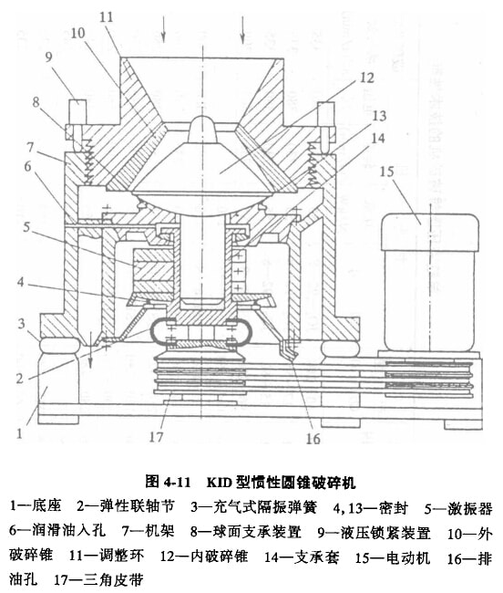 (1)KID型慣性圓錐破碎機的構造及工作原理