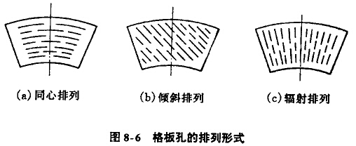 對傾斜排列的格孔(見圖8-6(b)),綜合了前兩種形式的優(yōu)點,減弱丁它們的缺點。所以,一般多選用傾斜排列形式。