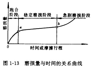 b點以后磨損劇烈增大,配合精度喪失,溫度升高,出現振動和噪聲,最后導致零件失效。