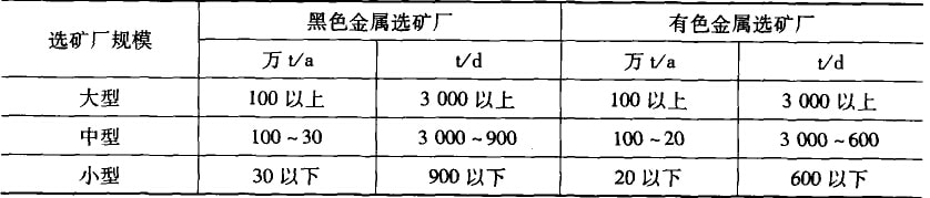 選礦廠的規模一般是按其年處理原礦量的能力來劃分的,如下表供參考。