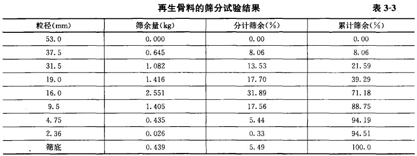再生粗骨料的篩分試驗結果如表3-3所示,從表中可以看出: