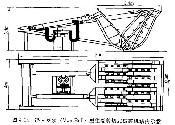 目前廣泛使用的剪切破碎機主要有馮·羅爾(Von Roll)型往復剪切式破碎機、林德曼(Linclemann)型剪切式破碎機從旋轉剪切式破碎機等。