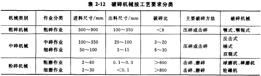 按照工藝要求,破碎機械的分類見表2-12。