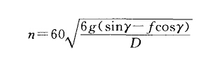 式中,g為重力加速度;r為動(dòng)錐襯板與基礎(chǔ)夾角;f為滑動(dòng)摩擦系數(shù);D為動(dòng)錐直徑(m)。