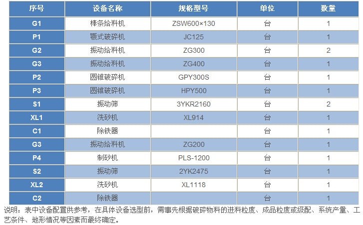 400t/h---花崗巖(玄武巖)類巖石的砂石骨料生產(chǎn)工藝設(shè)備配置表