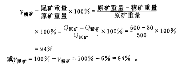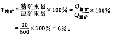 產品的重量通常以Q表示。產品重量與原礦重量之比的百分數叫做產品的產率,并以希臘字母γ表示。Q是絕對量,而γ是相對量。