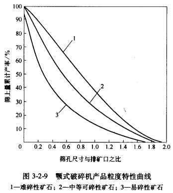 顎式破碎機的產品粒度特性曲線如圖3-2-9所示。