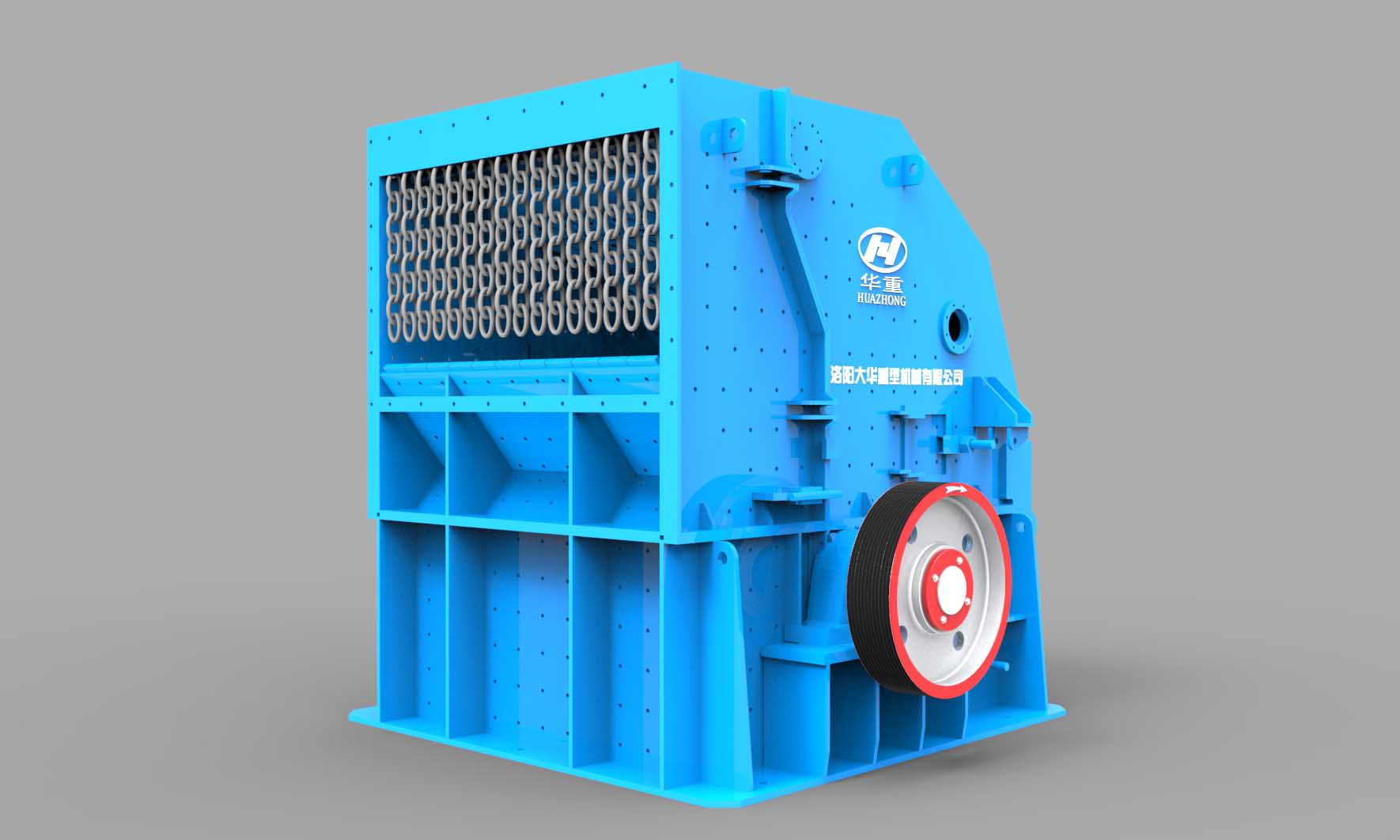 特殊設計的重型轉子結構,能提供極高的轉動慣量和錘頭沖擊破碎力,提高物料一次破碎成品率。