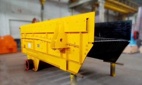 振動(dòng)給料機(jī)采用鋸齒形篦條梯級(jí)布置,不僅具有自掃功能,不易堵料,便于更換和調(diào)整間隙,壽命長(zhǎng),篩分效率高,安裝調(diào)整也非常便捷;兩段棒條組階梯高落差結(jié)構(gòu)設(shè)計(jì),能有效剔除細(xì)料免于重復(fù)破碎,大大降低初段破碎機(jī)負(fù)荷。